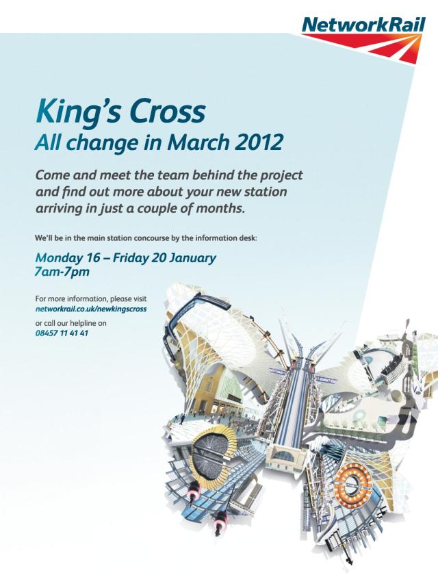 In anticipation of the opening of the new KX station in March this year, Network Rail will be available for all your questions from Monday 16th to Friday 20th January at the main information desk. An interactive exhibition will also be available next to the ticket office. Exciting times head!