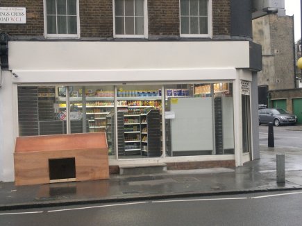 Another convenience store has just opened along Kings Cross Road. The new store is located on the site of the former red-light Sauna and situated opposite the Cling hostel (former Clerkenwell Magistrate Court). It is currently selling a range of convenience goods and as stated to me by an assistant within in two or three weeks will also be selling alcoholic drinks. If one also counts the convenience store on the corner of Kings Cross Road and Frederick Street, there are now a total of eight stores on Kings Cross Road between the start of Kings Cross Road along Pentonville Road and the point where Kings Cross Road becomes Farringdon Road that sell a similar range of convenience groceries, alcohol and with some also acting as news-agents .