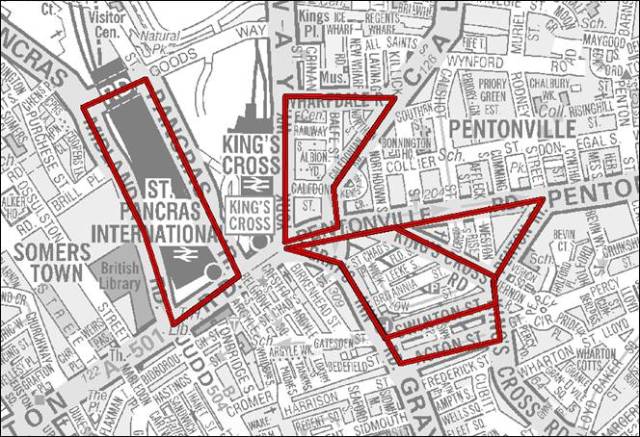 –          A5202 Pancras Road, Midland Road.