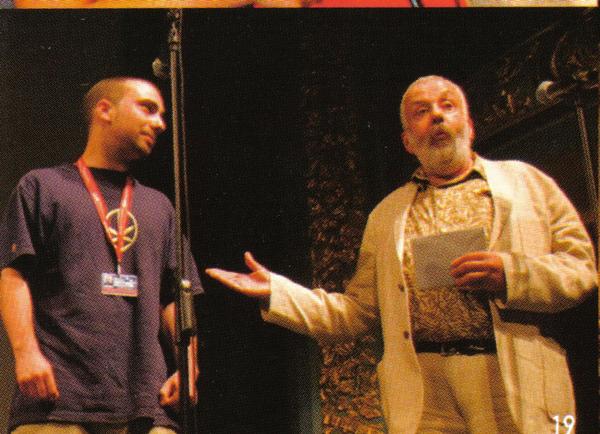 King’s Cross film-maker Greg Hall receiving the Katrin Cartlidge award from Mike Leigh for The Plague in 2004