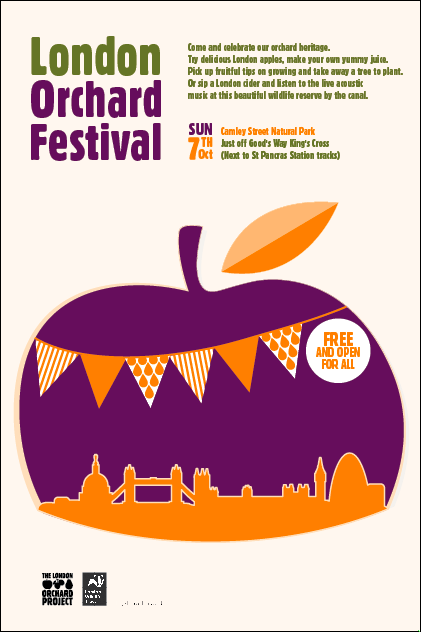 “Green-fingered Londoners can pick up fruitful tips on how to grow the perfect apples and take away a tree to plant. There will also be an exhibition of fruit that has been harvested throughout the capital by volunteers, juice pressing (bring your fruit and an empty bottle), a juice bar with a homemade pedal-powered fruit crusher, food baked in a rustic clay oven, a cider making and tasting stall run by the Campaign For Real Ale, games and activities for children, live acoustic music from Light Falls Forward andurban fruit folklore with Jonathan Huet of Walking with Trees.