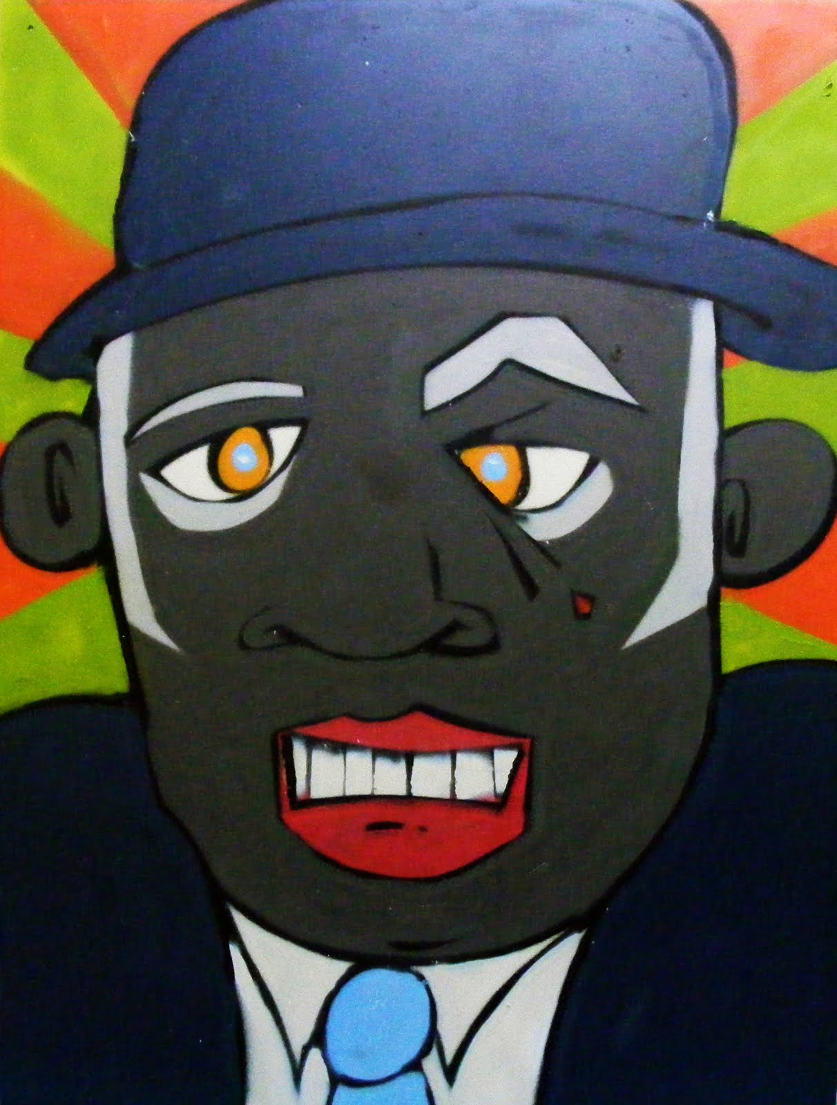 I used huge pieces of wood to spray paint on for the two larger paintings (the first two below). These are very heavy and would need collecting in a van, otherwise transportation can be arranged at the right price! For the smaller painting ‘Mr Grey’ I used a plastic board to paint on, this is light and can fit in a car or be carried on the tube or bus.