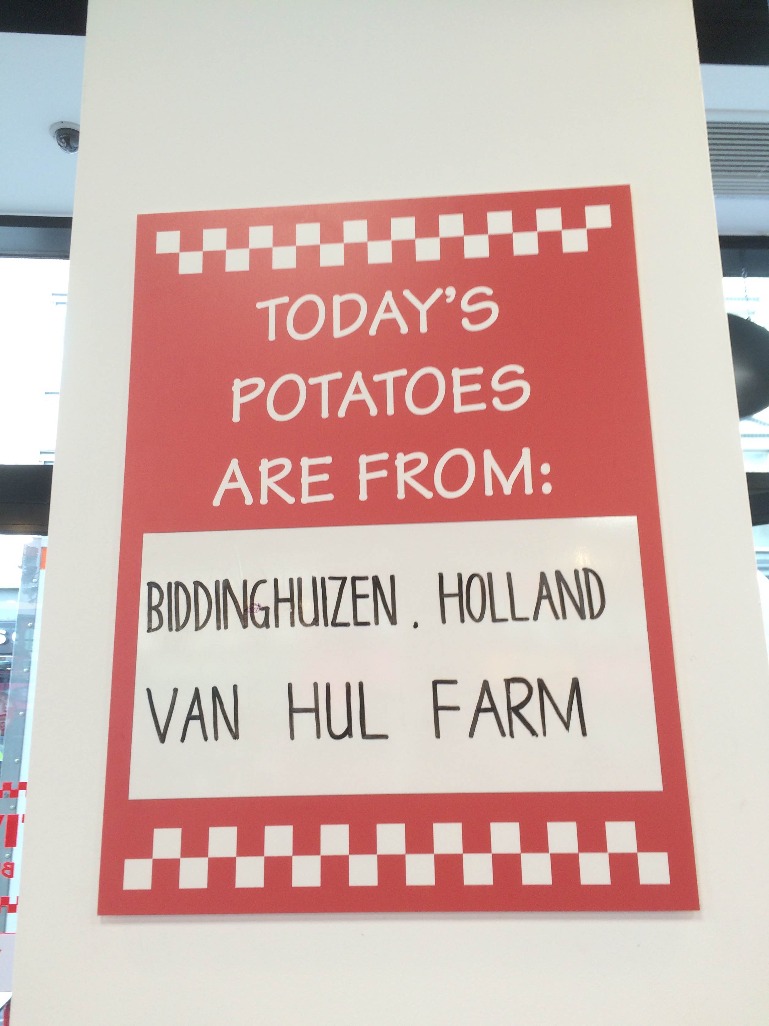 They proudly display where the spuds came from. Although i was surprised to see what I can only describe as lots of black bits in the chips which suggests they aren’t being prepared properly with the finnicky work of taking out the black lumps from the raw spud.